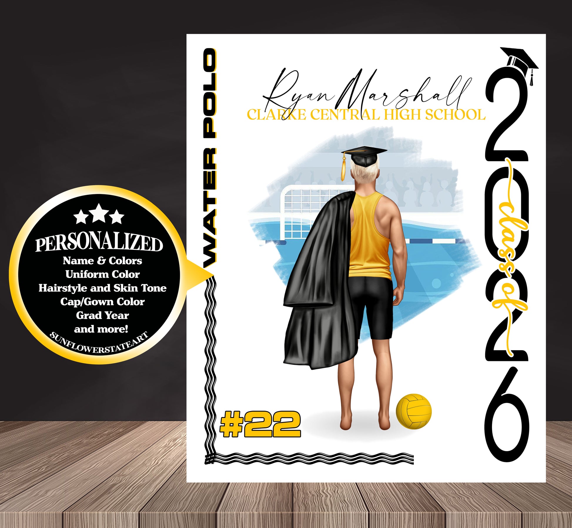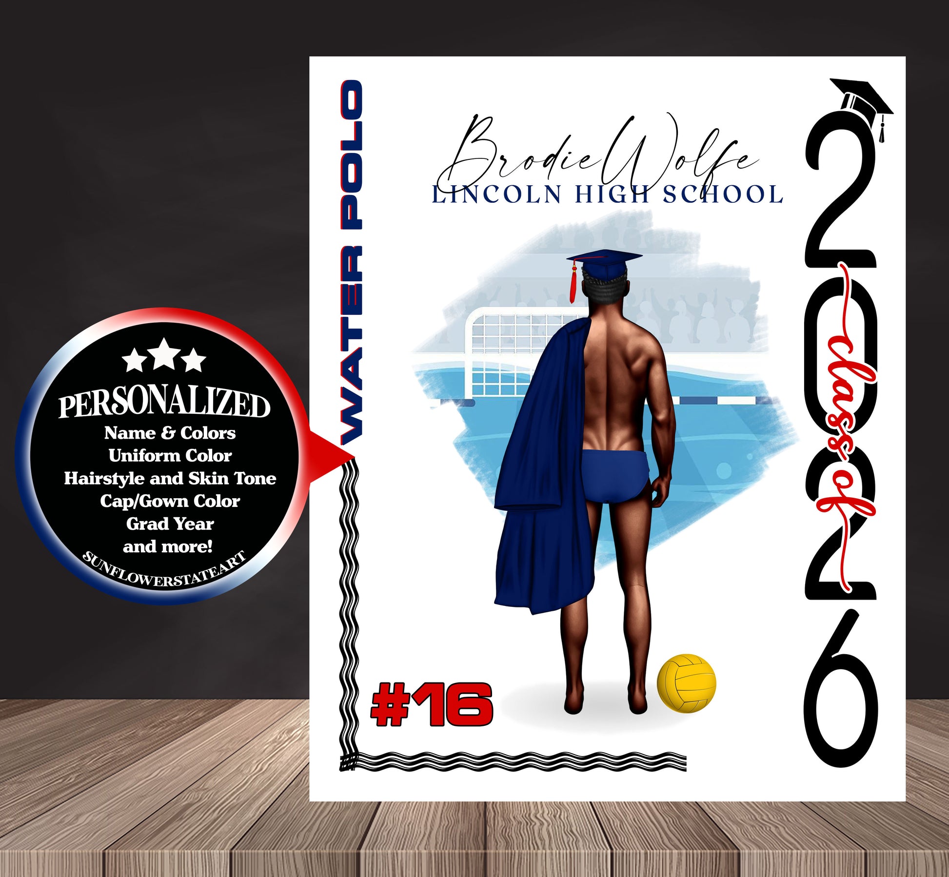Water Polo Poster, Senior Night Gift, Graduation Table Decor, Signing Day RJ
